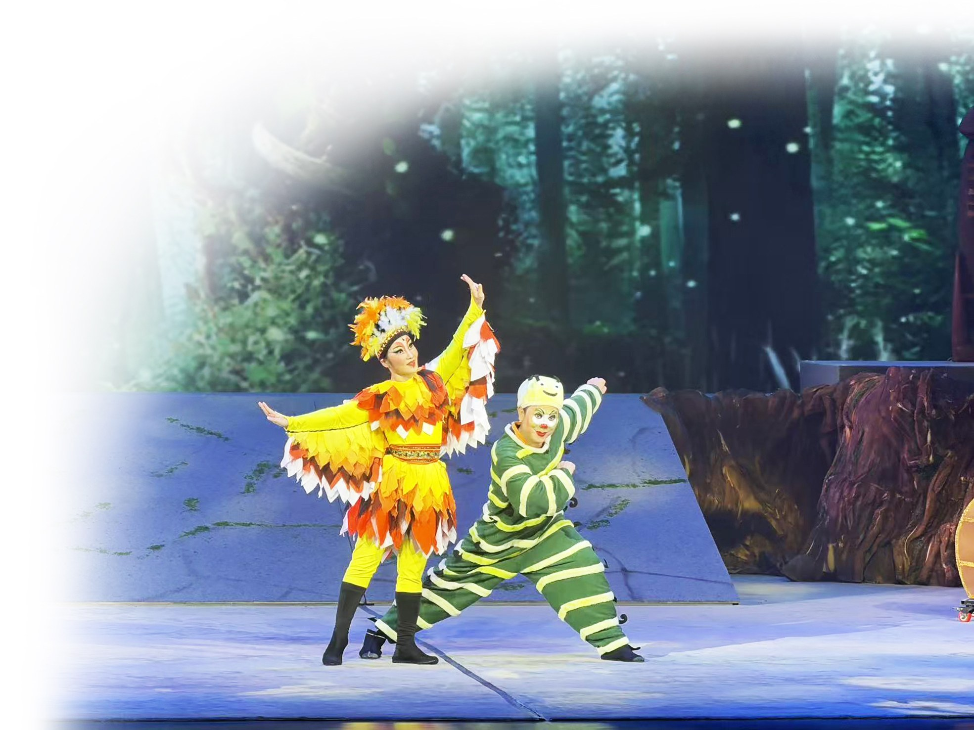 舞台上,演员阵容涵盖吴东梦、农棹菲、黄薇等多位优秀表演者。他们以夸张生动的表情和肢体动作,成功塑造了“画眉鸟”“大懒虫”等鲜活角色,构建起充满童趣与温情的“森林课堂”。强大的戏剧张力让台下的小观众全程沉浸其中,在感受邕剧艺术魅力的同时,体悟成长的深刻内涵,培养正确的人生观。