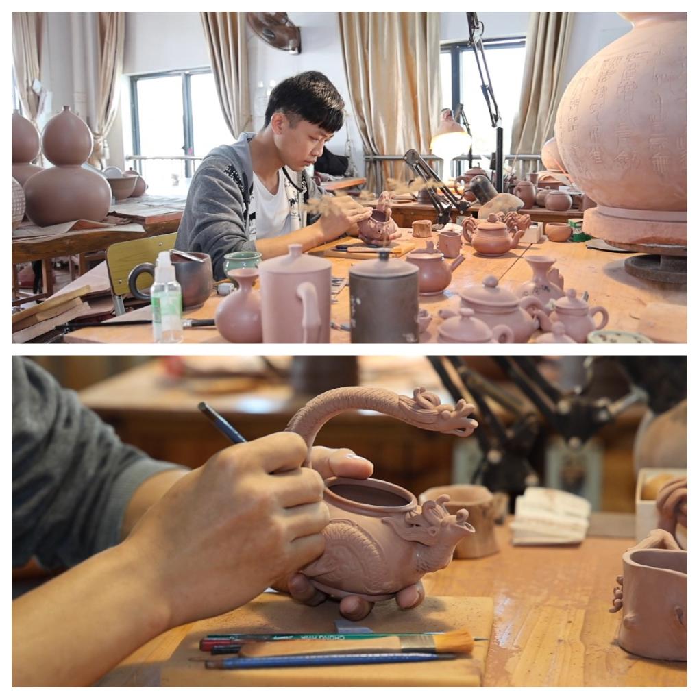 如今,越来越多的“00后”青年主动扎根钦州坭兴陶工坊,师从非遗传承人等行业大师,在日复一日的陶坯打磨、刻刀练习中,接过非遗传承的“接力棒”。年轻人的加入,为千年技艺注入青春动能。