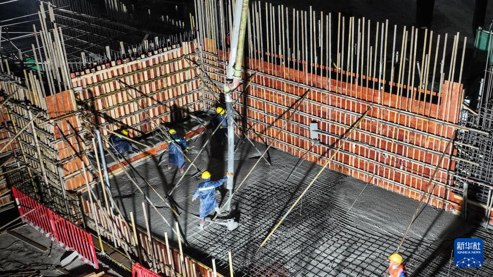 11月18日,工人在容县南站建设工地工作(无人机照片)。