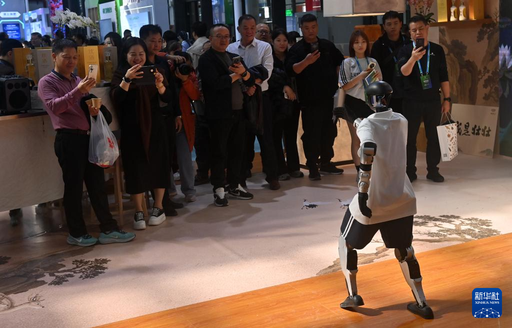 11月22日,在广西南宁国际会展中心,人们在展览现场观看机器人表演。