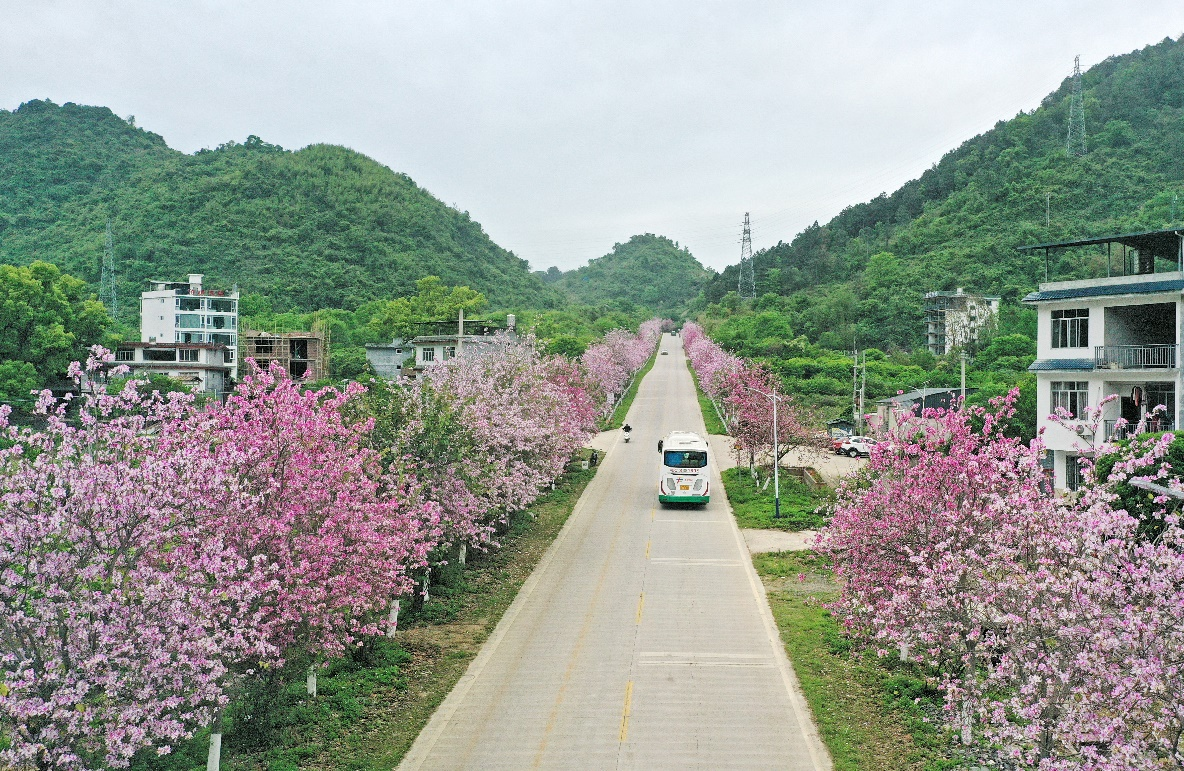 阳朔县城环城路道路两侧盛开的紫荆花。钟玲丽 摄