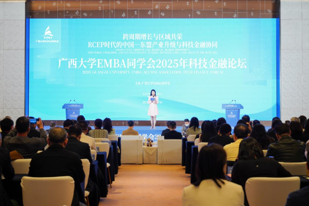 12月12日,广西大学EMBA同学会2025年科技金融论坛在广西南宁举行。本次论坛以“跨周期增长与区域共荣:RCEP时代的中国—东盟产业升级与科技金融协同”为主题,汇聚学术、产业与金融界等百余位专家学者、业界精英,共同探索RCEP框架下中国—东盟合作的新机遇、新路径。