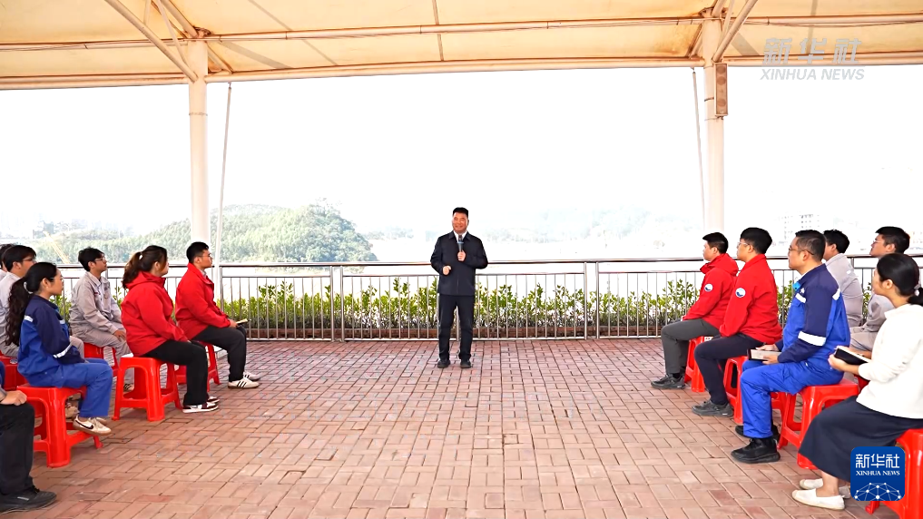 在世纪工程平陆运河青年枢纽建设现场,数十名运河建设者和当地干部群众齐聚一堂,现场聆听全会精神宣讲。