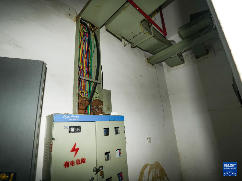 在四川某市一小区,地下室内的电箱电线无盖板保护(12月5日摄)。