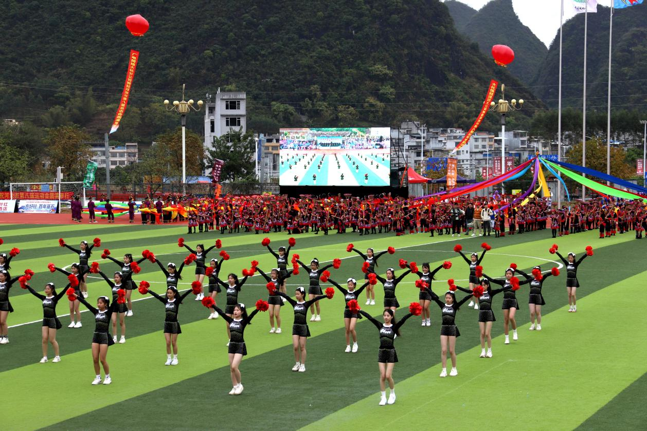 12月24日,以“全民健身 • 健康你我”为主题的河池市第八届运动会在大化瑶族自治县公共体育场开幕,来自全市11个县(区)以及市直机关共12个代表团的2000余名运动员将展开为期6天的角逐。本届运动会共设有篮球、足球、气排球、乒乓球、羽毛球、投绣球、田径等7类比赛项目。(黄晗 摄影报道)