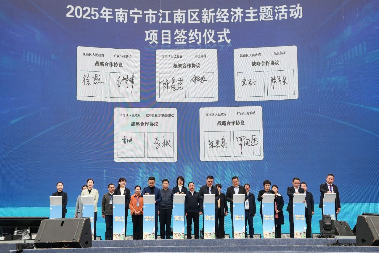 当天,江南区人民政府与11家优质企业集中签署了战略合作项目,内容涵盖宠物经济、人工智能,生物医药、大健康、文旅融合开发等多个前沿领域。