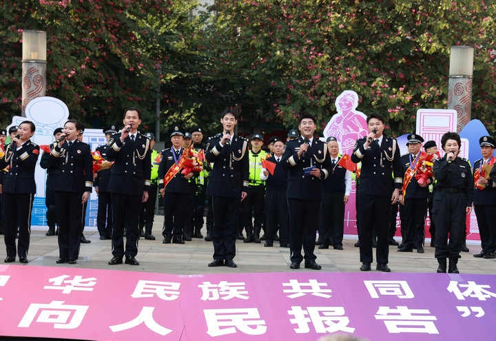1月10日上午,“向人民报告——河池市公安局庆祝第六个中国人民警察节系列活动暨警营开放日活动”在广西河池市金城江区文化广场举行。活动全面展示公安机关维护社会稳定、打击违法犯罪、服务群众工作的坚强决心和工作成效,营造警民共创平安和谐社会的浓厚氛围。