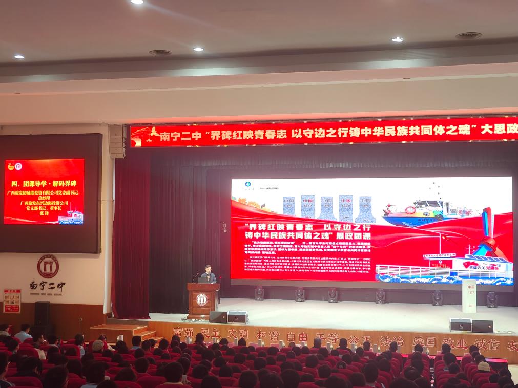 新华网南宁1月17日电(张简兮)近日,以“界碑红映青春志 以守边之行铸中华民族共同体之魂”为主题的大思政团课在广西南宁二中凤岭校区举行。团课探索家校社协同育人的新实践,让思政教育更具广度与温度,吸引了共青团广西区委及各级团组织代表、高校团干教师和中小学师生代表近500人参与。