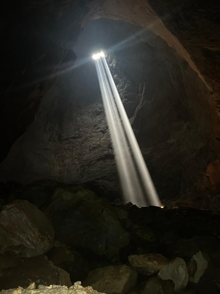 佩戴缆绳、从一百多米高的垭口垂降,身体悬在半空,脚下,地球原始的脉动在视野里渐次展开——崖壁如削,苍藤垂悬,洞大如谷,谷底,一片蓊郁的原始森林静卧其间。天地之间,无比广阔,亦无比安静,由此,一场秘境探洞之旅开始了。