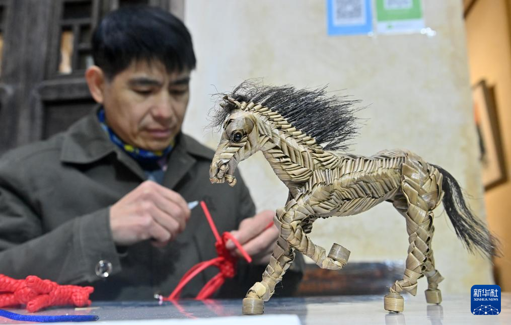 马年春节临近,在广西南宁市三街两巷,壮族棕编技艺手艺人潘武每天都忙碌着编制形态各异的马形小饰品。棕编是以棕榈树叶为原料制作传统手工艺品的技艺,编法灵活多变。为了更契合年节氛围,潘武在编制时,在传承棕编传统技法的基础上,使用中国结线材、皮绳、彩绳等材料,得到消费者青睐。