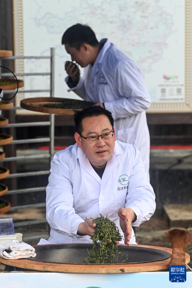 2月6日,在广西三江侗族自治县林溪镇高友村,工作人员在制作早春茶。