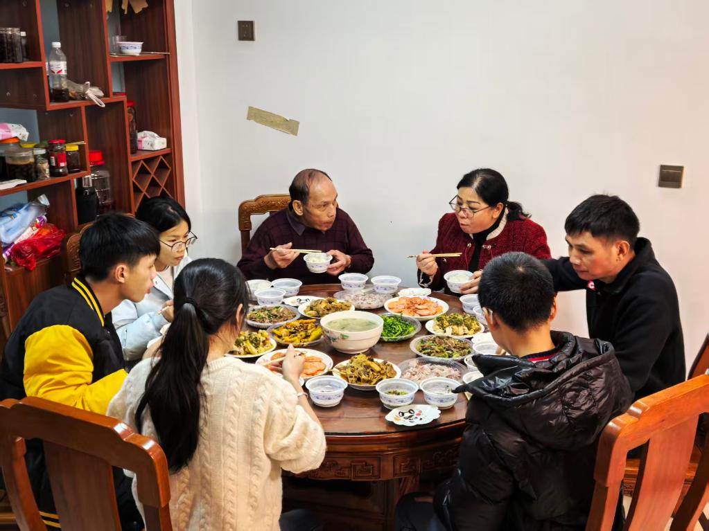 一家三口的小汽车在南宁市武鸣区的一处小区停了下来。上楼进屋,亲戚们早已忙活多时,热乎的饭菜摆满了餐桌。
