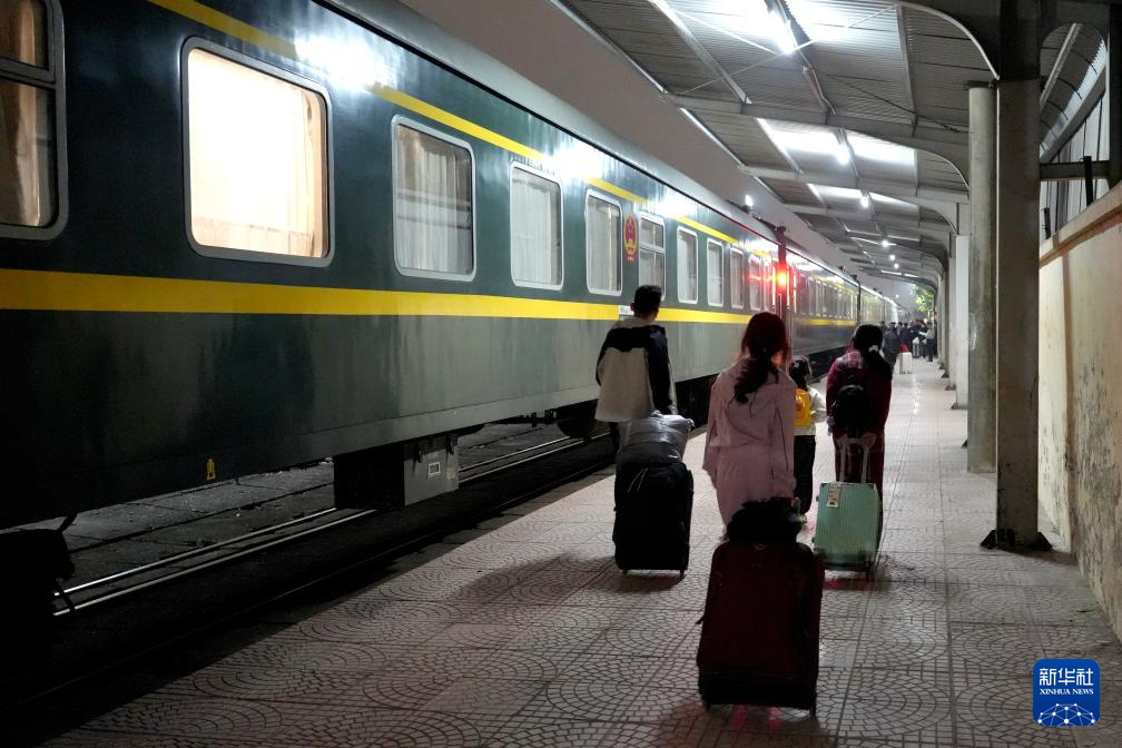 2月10日,四名中国旅客乘坐由越南河内驶向中国广西南宁的中越国际联运旅客列车,返乡欢度春节。