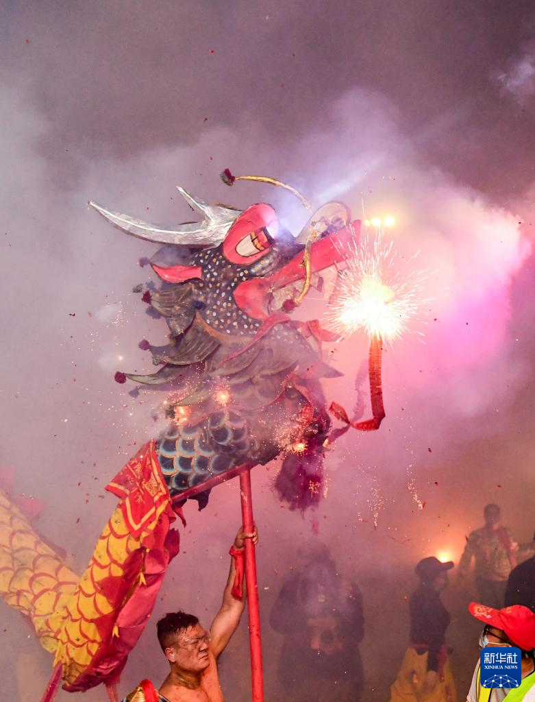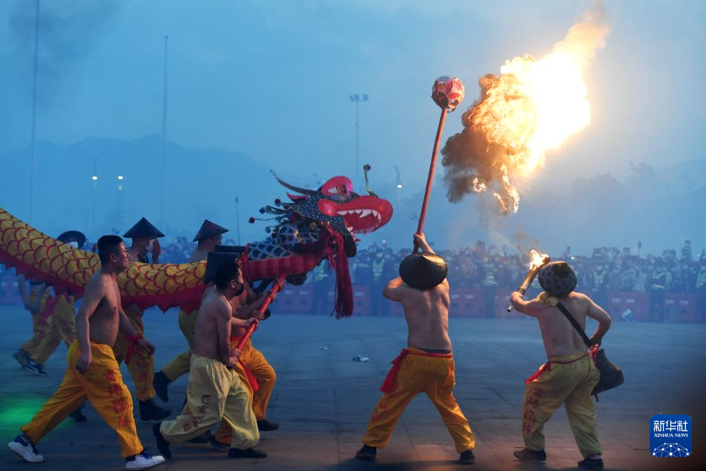 2月27日,2026年宾阳炮龙节百龙舞宾州活动在广西宾阳县举行。炮龙舞新春,现场欢乐沸腾。