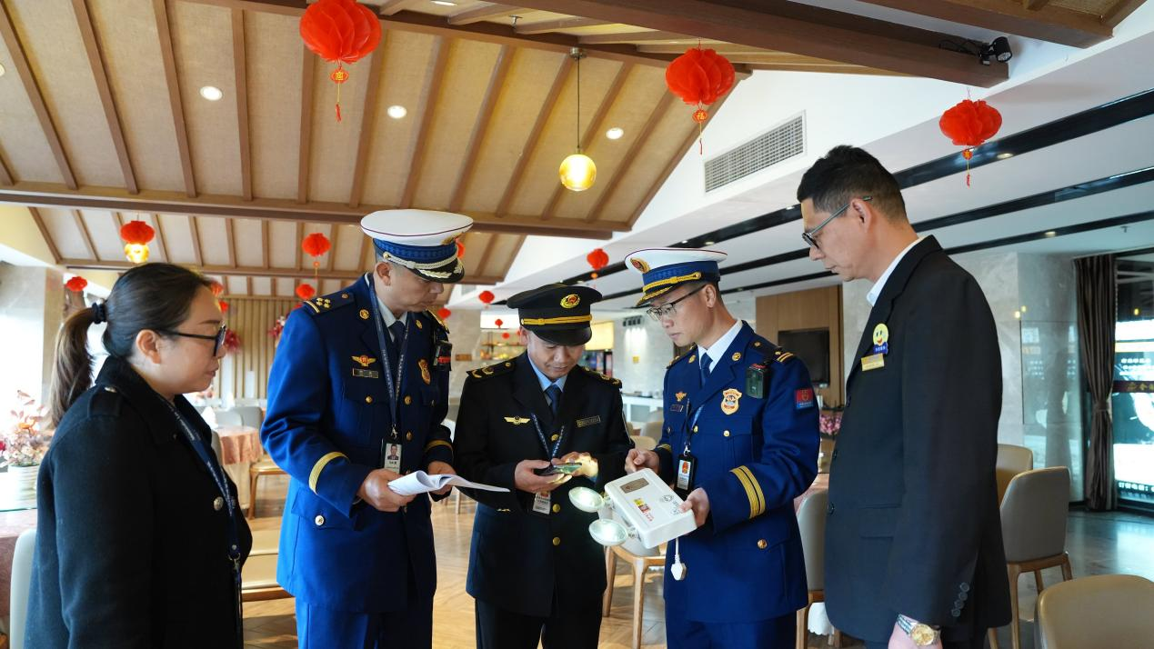 永福县消防救援大队对辖区的酒店进行消防产品质量监督检查。蒋甜甜摄。