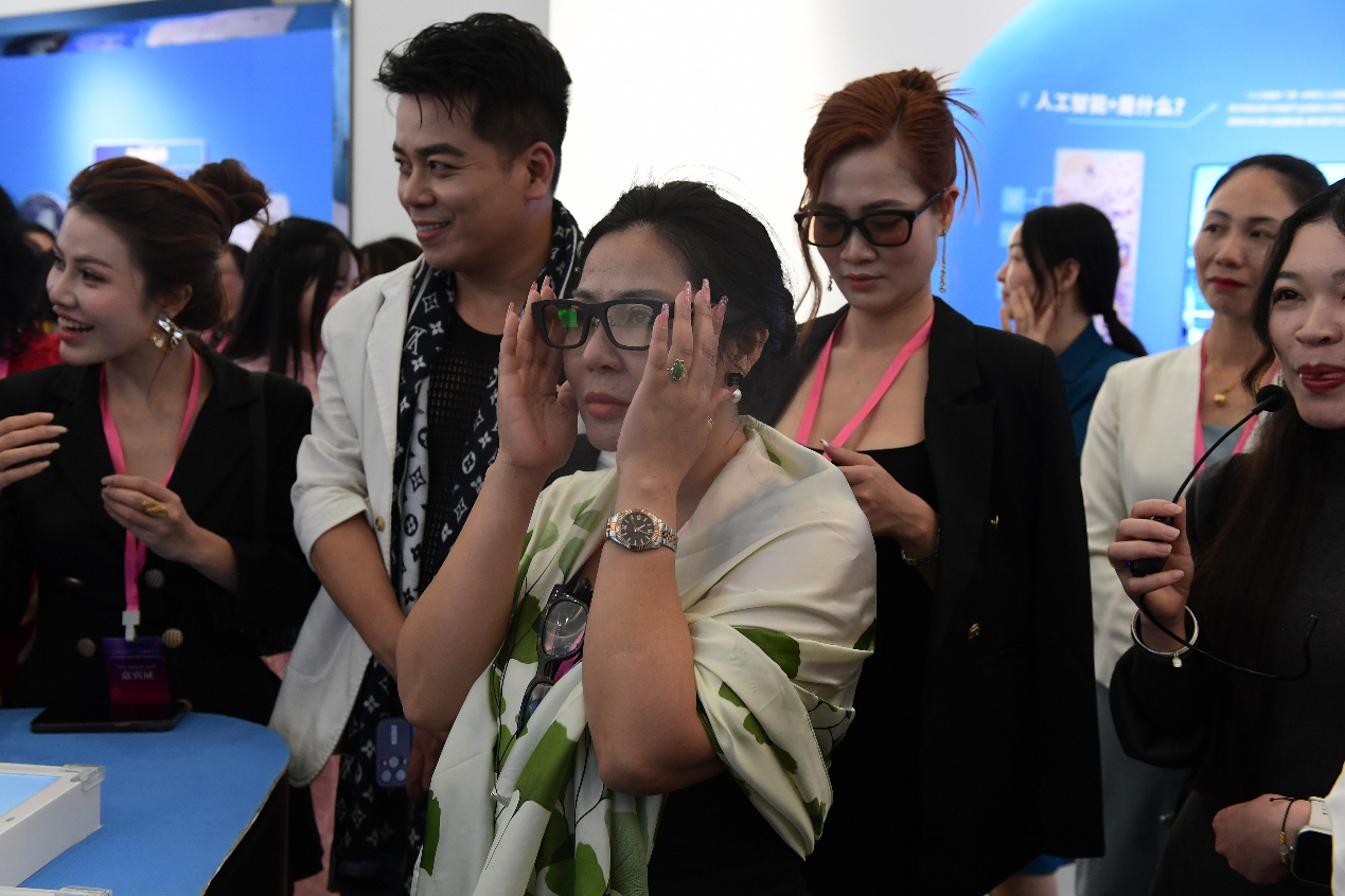 越方妇女代表体验佩戴越文即时翻译眼镜。庞海文 摄