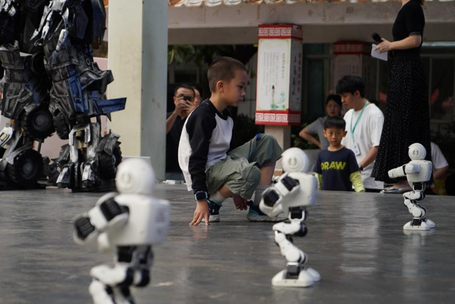 机器人表演吸引社区居民围观。