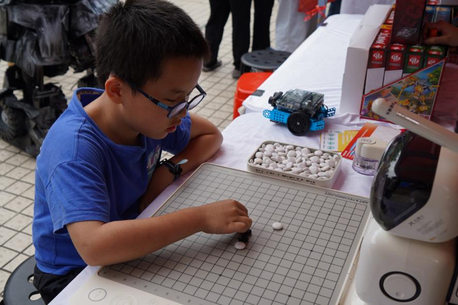 小朋友在和下棋机器人对弈。