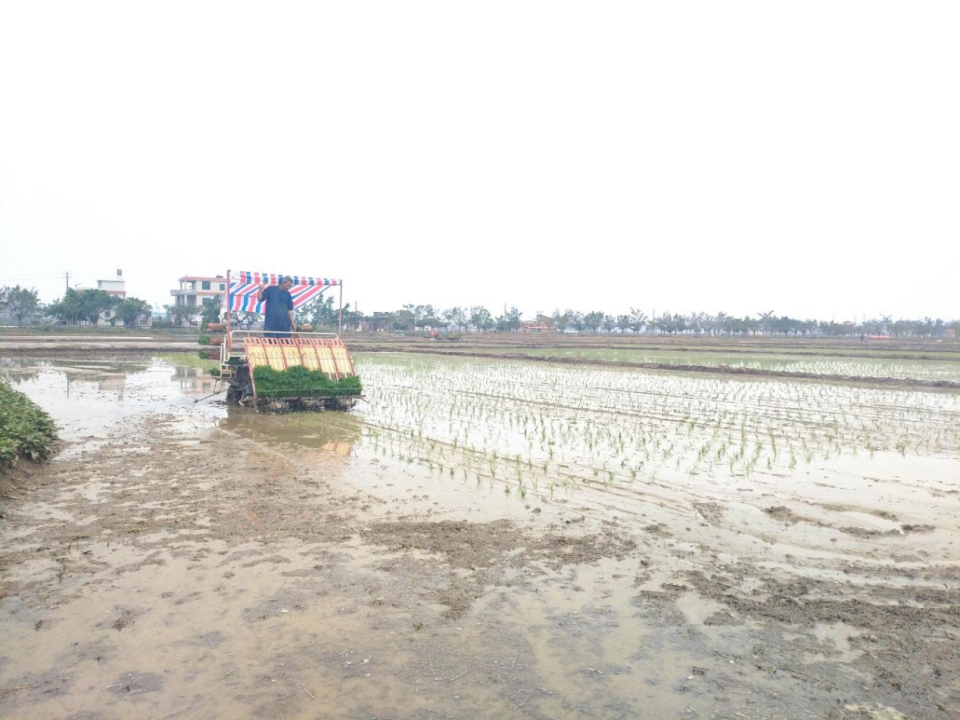 耙田刚结束,高速插秧机紧随其后。在道良村的水田里,农机手熟练操控方向盘,一株株嫩绿的秧苗从苗盘上滑落,整齐划一地插入水田。“一台插秧机一天能插30亩,效率是人工的10倍左右,而且株距、行距均匀,通风透光性好,更有利于水稻后期生长和产量提升。”梁海彪说。
