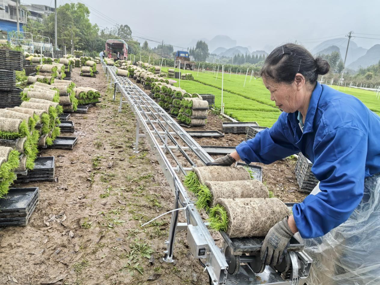 近日,由永福县尚亿种植专业合作社承接的荔浦市种植户早稻秧苗订单,第一批次成功起苗,通过智能传输带实现从苗场到车辆的“无缝衔接”,秧苗被集中运往荔浦市生产大田。