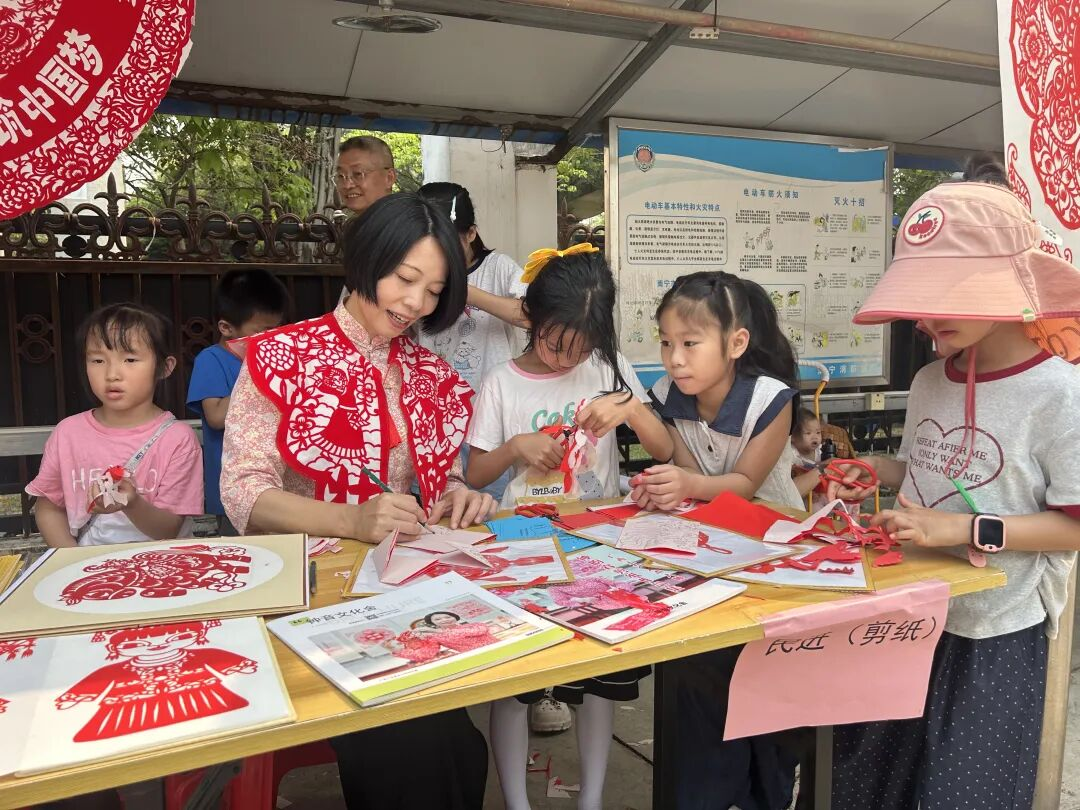 现场还设置非遗手工、抛绣球等互动项目,打造“一站式”民族文化体验场景。剪纸、壮锦、绣艺、民族服饰创意手作展等体验区前,志愿者细致讲解非遗历史与技艺,手把手指导创作。家长与孩子携手协作,在指尖互动中感受传统文化博大精深,让民族技艺在实践中传承。抛绣球区域热闹非凡,居民踊跃参与、趣味比拼,在互动中增进交流,进一步增强文化认同感与民族情怀。